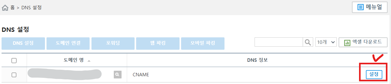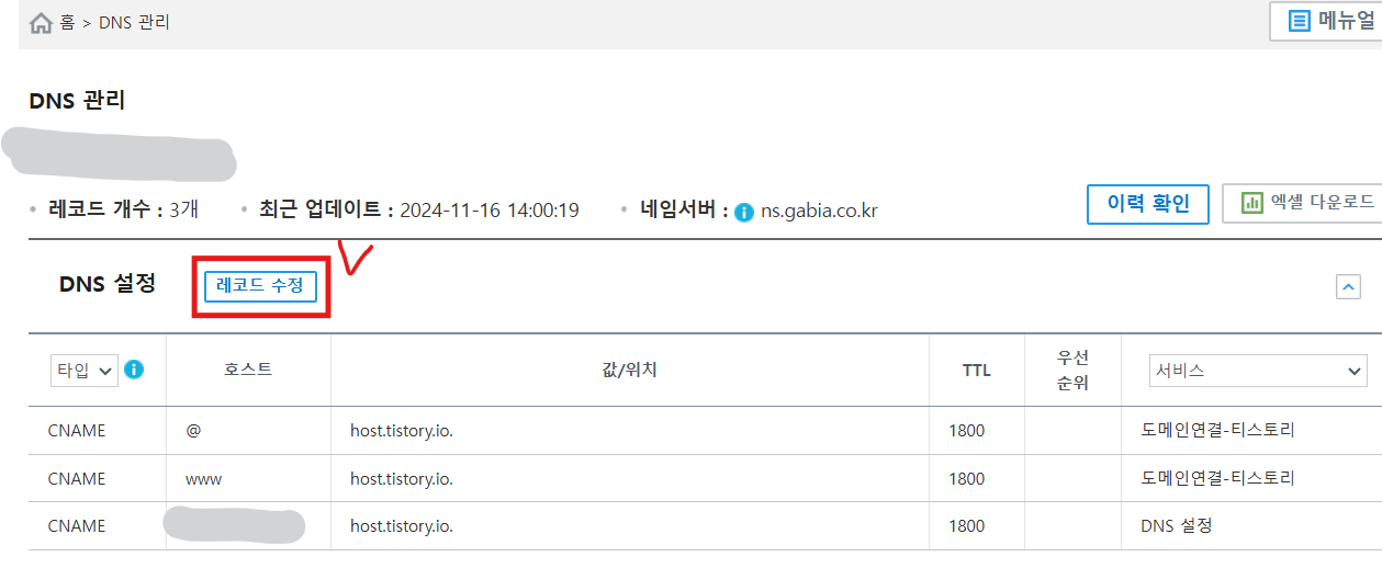 5. DNS 설정에 레코드 수정