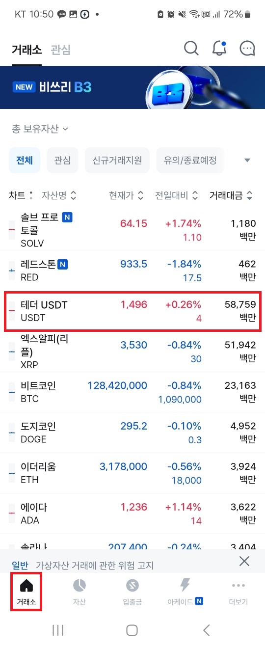 1. 코인원 로그인 후 [거래소] 메뉴 이동