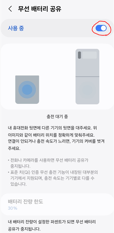 갤럭시워치 충전이 필요한데 충전기가 없을 때 핸드폰으로 충전이 가능합니다.