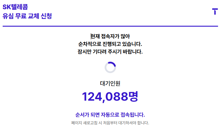 1. T world 홈페이지 접속 후, 유심 무료 교체 신청 클릭