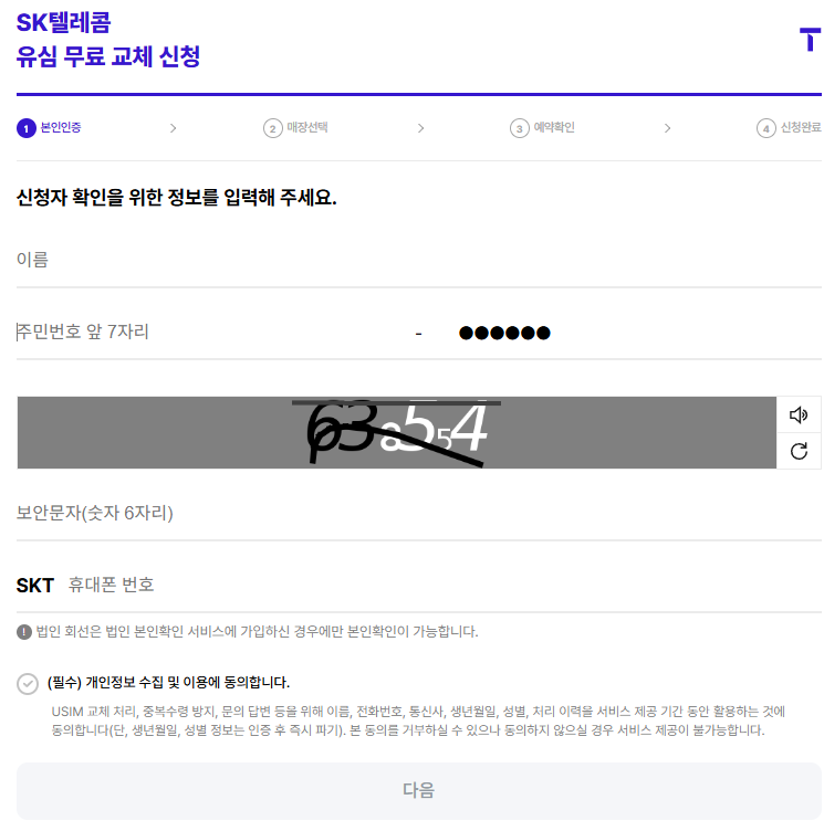 3. 신청자 확인을 위한 정보 입력